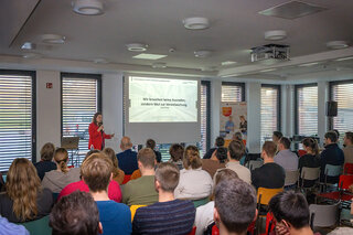 Katharina Semmler, Geschäftsführerin des HBZ Münster, eröffnete die Veranstaltung und machte deutlich, dass das Alumni-Event den Teilnehmenden nicht nur die Möglichkeit bietet, bestehende Kontakte zu pflegen, sondern auch neue Partnerschaften zu knüpfen und das Netzwerk strategisch auszubauen. Im Rahmen dieses starken Netzwerks lieferten fachliche Beiträge praxisnahe Impulse und zeigten aktuelle Trends und Herausforderungen, die künftig in die Lehre einfließen können.